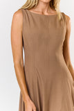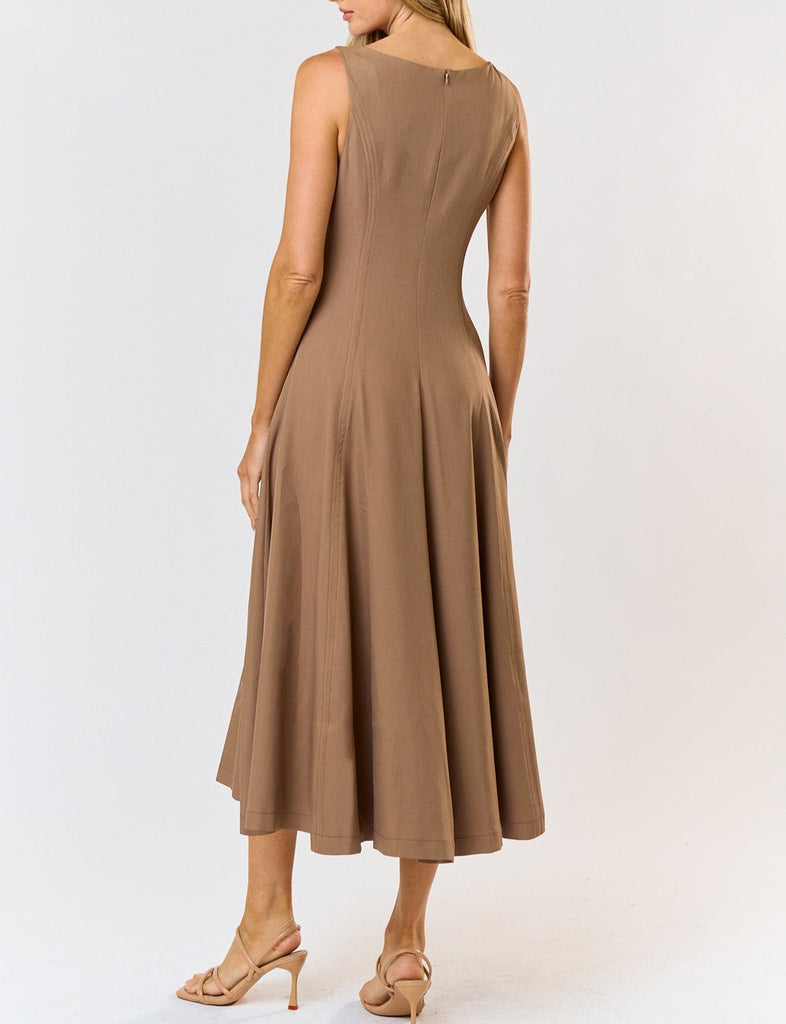 Hazlenut Cinched and Sleeveless Flare Bottom Dress