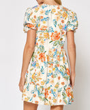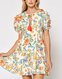Marigold Petals Puff Short Sleeve Mini Dress with Tassel