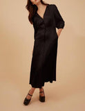 Morticia Tie Wrap Detailed Midi Silk Dress in Black