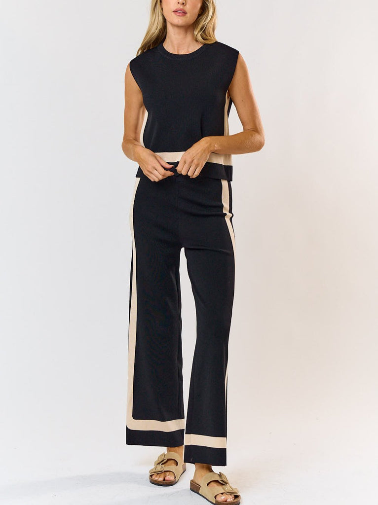 Blend style and sophistication with this chic color-block set! The black and taupe combo, sleeveless top paired with wide-leg trousers, makes it a modern twist on business-ready elegance!