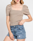Penelope Square Neck Puff Short Sleeve Sweater Top