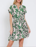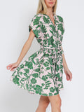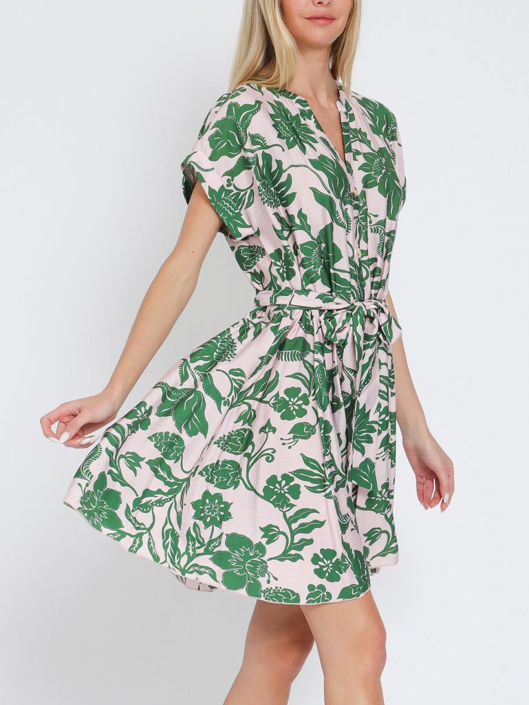 Sweet and flirty, this button-down mini dress blooms with charm in green and pink. The tie waist adds a flattering touch, perfect for picnics and sunny escapes!