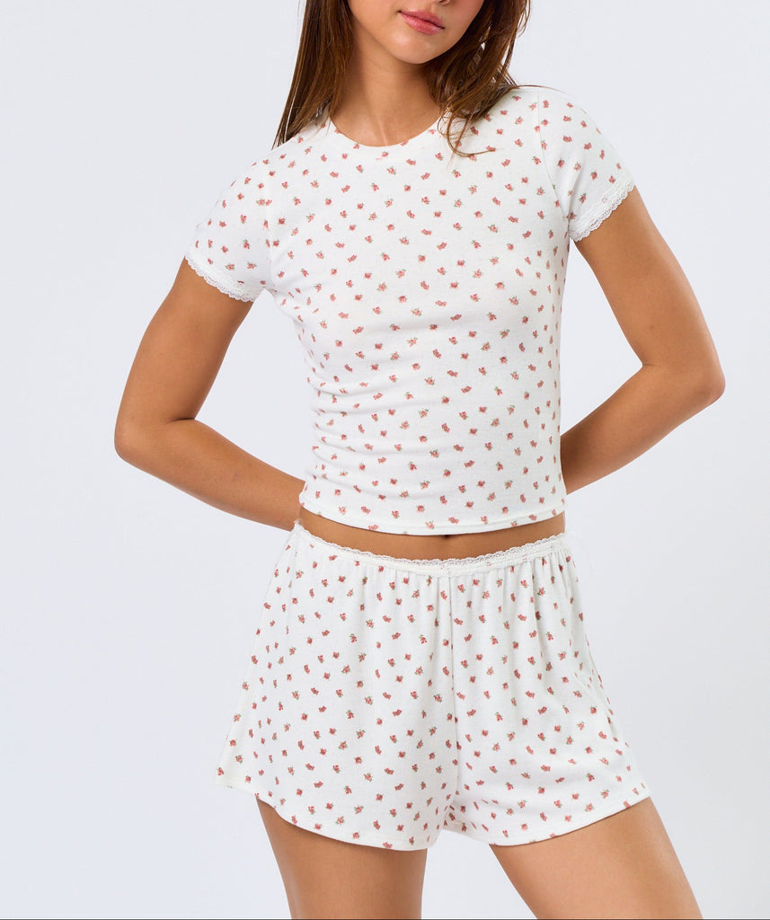 Soft and breathable, lightweight fabric like cotton pointelle, this set ensures maximum comfort and airflow, especially ideal for warmer climates.Lace trim elevates the set with a touch of elegance and romance.