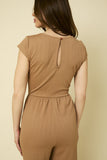 Samantha Textured Short Sleeve Elastic Waist Jumpsuit in Tan