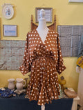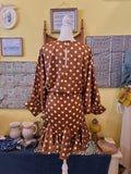 Step out in playful charm with this polka dot mini dress, featuring stylish dolman sleeves and a flattering tie waist. Perfect for brunch or a night out, it’s a fun and flirty look that never goes out of style!