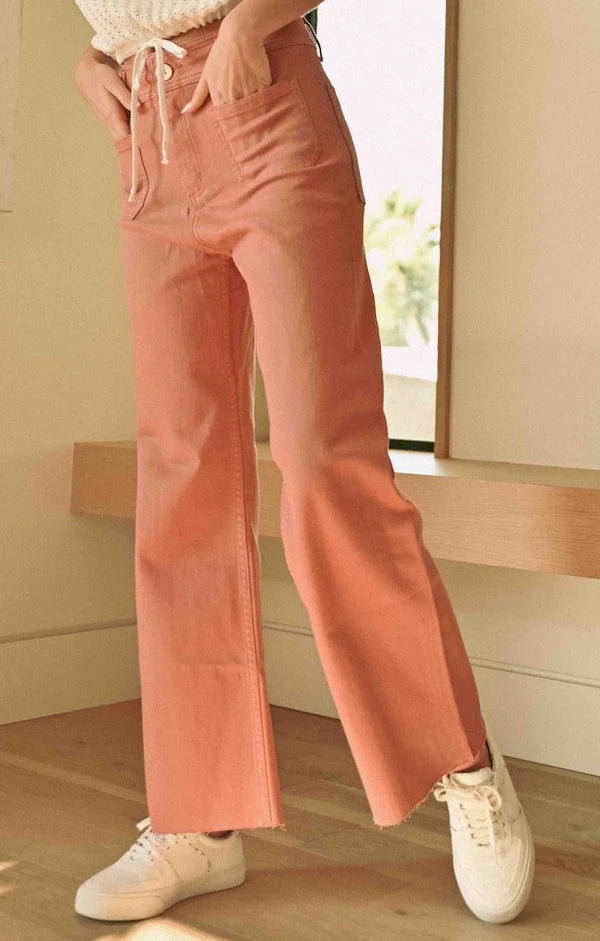 See You There Cotton Wide Leg Pocket Detailed Pant In Apricot Orange