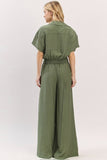 Add a splash of fun to your wardrobe with the Selva Top! This olive green cropped short sleeve top features a front twist and a chic collar for a breezy, casual vibe. Perfect for sunny days or layering up, it’s a stylish way to keep cool and stand out.