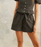 Shadow Puff Paperbag Tie Waist Shorts in Charcoal (Set)