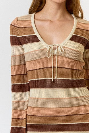 Piano Stripes Sleeveless A-Line Sweater Mini Dress