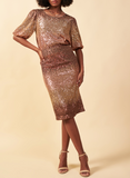 A perfect top for the upcoming holiday festivities. Paired with the matching pencil skirt or different bottoms, this top is sure to make a statement. This top features an amber/gold ombre effect with sequins, puffy sleeves and is lined.