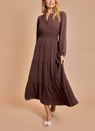 Victrola Pleated Style Long Sleeve Maxi Dress