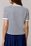 Playful meets polished in the Love Line Puff Sleeve Top. Designed with classic navy stripes and a vibrant heart graphic, this tee adds the perfect pop of charm to your everyday look.