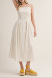 Effortless elegance meets everyday comfort in this versatile cami dress. Crafted from a breathable linen and cotton blend, the structured pleated tucks create flattering dimension through the bodice. Available in two timeless hues—soft oatmeal and earthy olive—this piece transitions seamlessly from casual days to dressed-up occasions. The relaxed silhouette and adjustable straps offer all-day wearability, while the natural fabric keeps you cool and comfortable. A wardrobe essential that works as hard as you do.