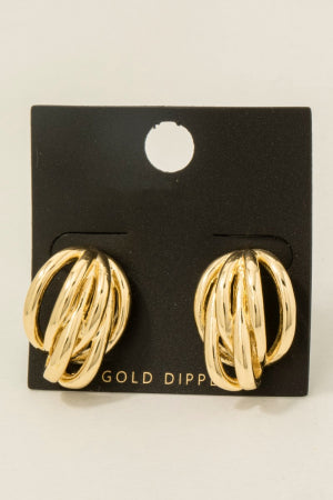 Abstract Oval Gold Link Stud Earrings