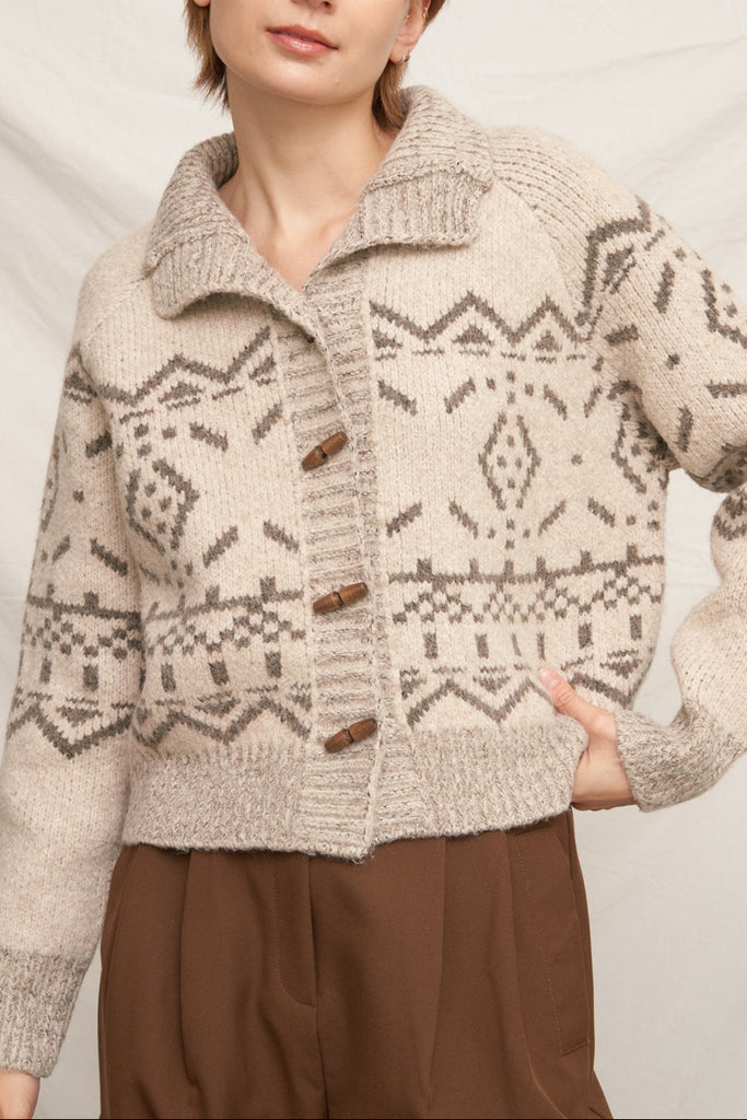Cozy up in the Ashlin Printed Sweater Cardigan—your new go-to for chilly days! This grey patterned delight features charming wooden buttons that add a touch of rustic fun. Perfect for layering, it keeps you snug while turning heads with its playful, textured design. Whether you're lounging or out and about, Ashlin brings warmth and style together in one comfy package.