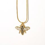 Make a buzz with this bold gold bee pendant necklace! A statement piece that adds a touch of whimsy and charm to any outfit.