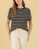 Bliss Horizon Striped Short Sleeve Sweater in Navy