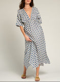 Channel your inner boho-chic with the Pottery Barn V-neck short sleeve maxi dress in serene blue, a perfect blend of comfort and style for your laid-back summer vibes.