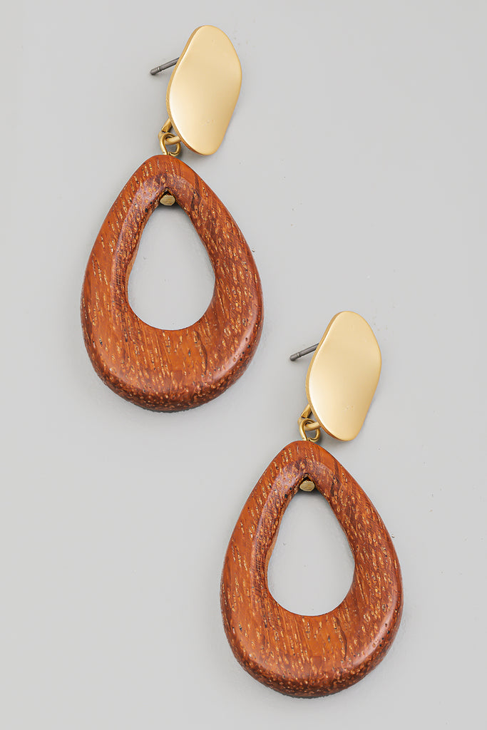 Boho Teardrop Wooden Earrings in Gold/Brown