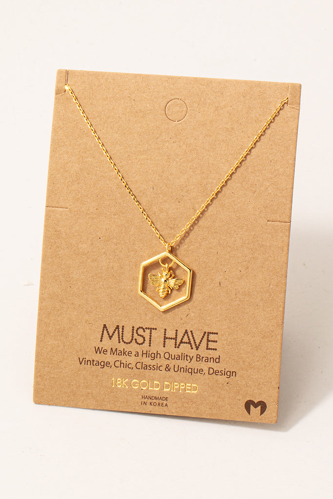 • Bumble Bee Hexagon Pendant Necklace (Assorted)