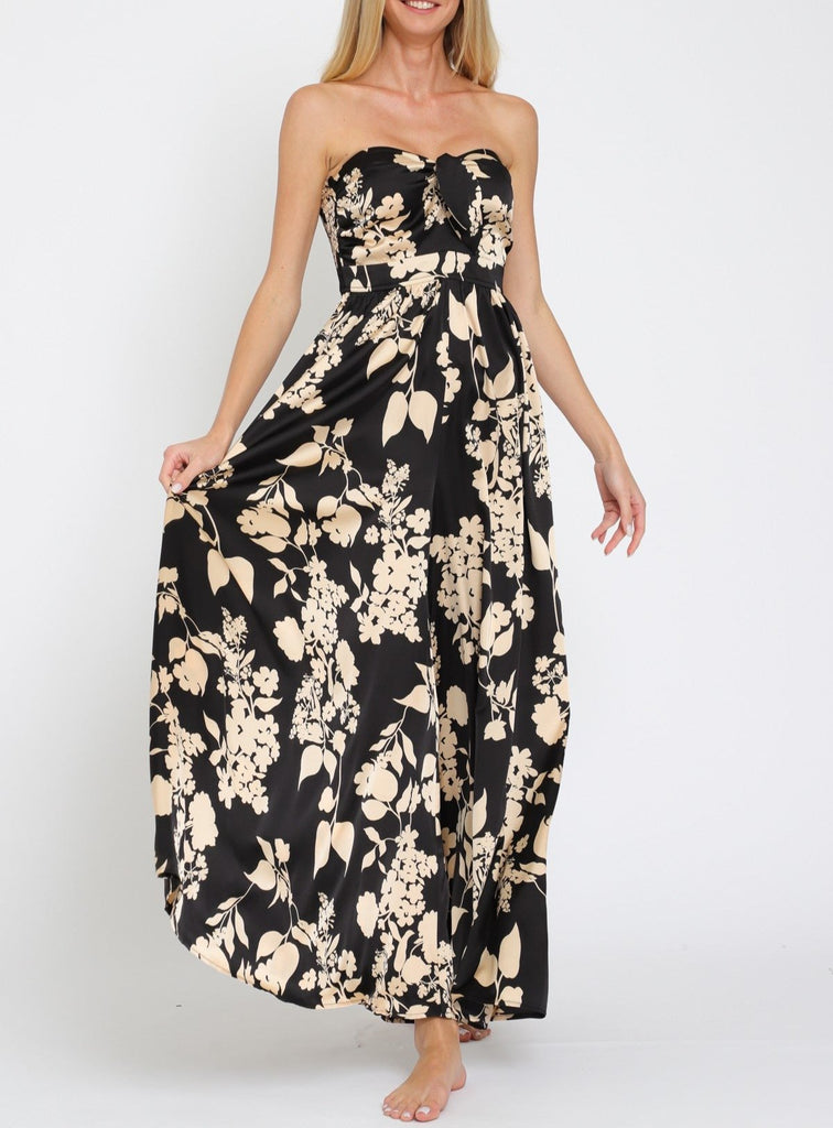 Caroline Smocked Tube Top Satin Jumpsuit