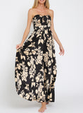 With its charming floral and trendy tube top design, this jumpsuit captures the essence of the season. The smocked back top adds a touch of playfulness and comfort, making it the perfect choice for any fall adventure.