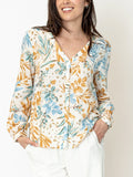 Feeling Floral Tropical Printed V Neck Button Down Blouse In Cream/Blue Multi