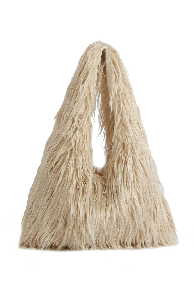 Carry your essentials in style with the Cloudbound Tote—a dreamy, oversized bag that feels as soft as a cloud. This fluffy cream-colored companion features spacious compartments perfect for everything from groceries to weekend getaways. The plush texture adds a cozy touch to any outfit, while sturdy handles ensure comfortable carrying. Whether you're running errands or heading out for adventure, this tote brings a playful pop of comfort to your day.