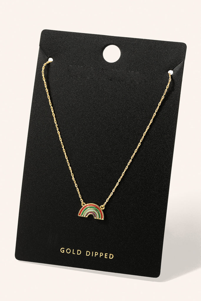 Colorful Dainty Rainbow Charm Necklace in Gold