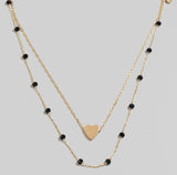 Dainty Heart Double Layered Beaded Necklace in Black/Gold