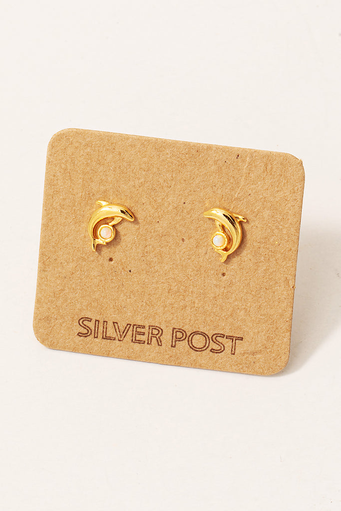 Dolphin Tricks Dainty Stud Earrings with Rhinestone (Gold/Silver)