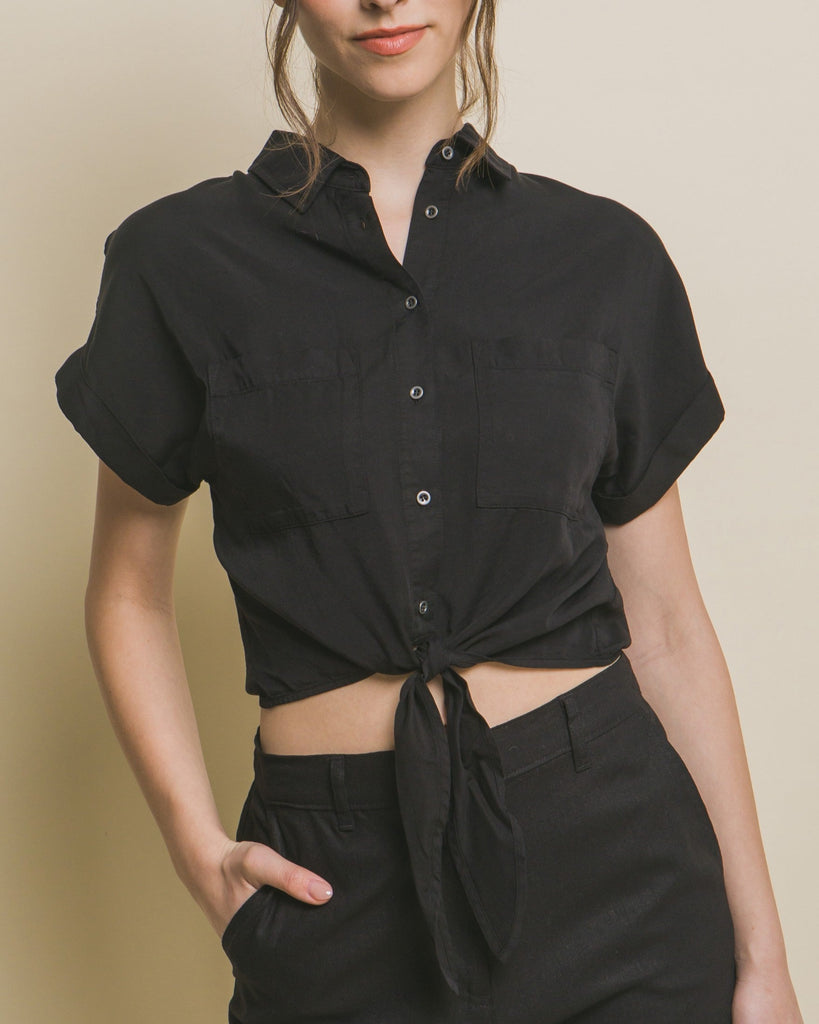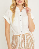 Elowen Button Up Tie Front Cropped T-Shirt (Assorted Colors)