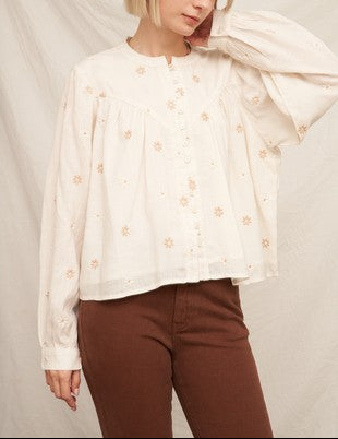 Ember Petals Embroidered Long Sleeve Button Down Top