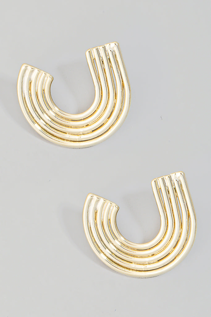 Rainbow C-Shaped Stud Earrings (Gold/Silver)