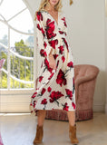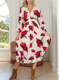 Falling Roses Kimono Sleeve Tie Back Maxi Dress