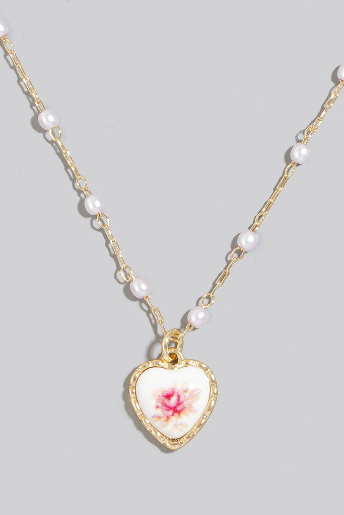 Floral Ceramic Heart Beaded Necklace (Assorted)