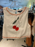 The Frutta Fiore set pairs a breezy white linen tank top with a matching skirt, both adorned with colorful embroidered fruit designs. This playful duo adds a fresh, fun twist to your wardrobe, perfect for sunny days and cheerful vibes. Stay cool and stylish with a touch of fruity charm.