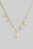 Layered Charm and Pink Ceramic Heart Necklace in Gold
