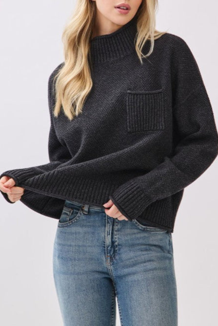 Cozy meets cute in the Lorelei Sweater! This playful mock neck knit features a comfy rolled hem and a handy front pocket detail. Whether you're lounging or layering, this sweater adds a fun, effortless vibe to your casual look.