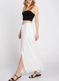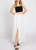 This set exudes elegance and a flirty, flowy feel. The skirt has a high slit and a lot of movement. The Crop top sits right at the waist which makes this set very flattering.
