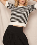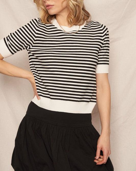 Marjorie Striped Short Sleeve Sweater in Black/White