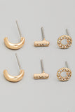 These versatile studs add a touch of glam to any look, making them a must-have accessory. Mix and match the three unique designs or wear them all at once for an extra dose of style. Perfect for any occasion!