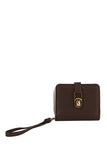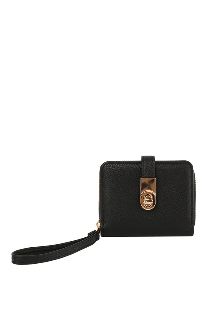 Carry your essentials in style with this twist lock flap wallet wristlet! Featuring a secure twist-lock closure that keeps your belongings safe, this compact companion fits perfectly in your hand or clips to your wrist for hands-free convenience. The sleek flap design adds a touch of sophistication, while the wristlet strap makes it ideal for nights out, travel, or everyday errands. Perfect for storing cards, cash, and coins without the bulk of a traditional wallet. Your new go-to accessory awaits!