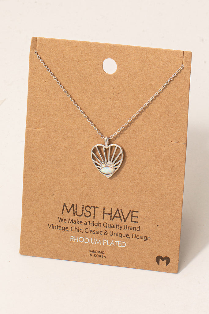 • Intricate Heart with Oval Opal Necklace (Assorted)