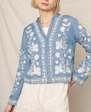 Petal Stitch Quarter Sleeve Embroidered Denim Top