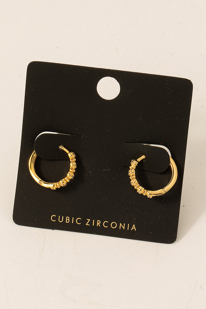 • Rhinestone Leaves Mini Hoop Earrings in Gold