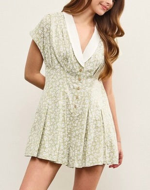 Get ready to bloom in style with the Sage & Bloom Collar Pleated Romper. This romper features a trendy sage color, cute collar pleats, and beautiful flowers perfect for the spring and summer seasons. Stay cool and fashionable in this must-have for your wardrobe!