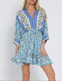 This dolman sleeved dress is a Cottage Core dream. This garment features a cute floral print in pastel and neutral colors with a tie drawstring.