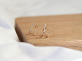 Tiny double hoop earrings cuff around the earlobe for a unique look.