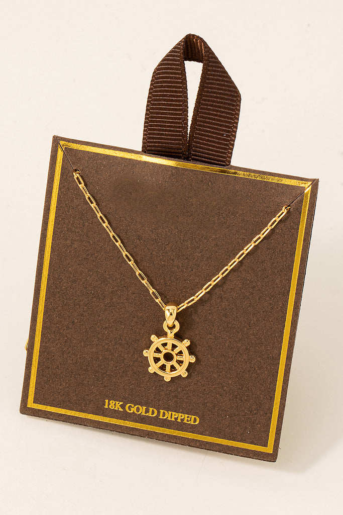 Steamboat Ahead Steering Wheel Charm Necklace in 18K Gold